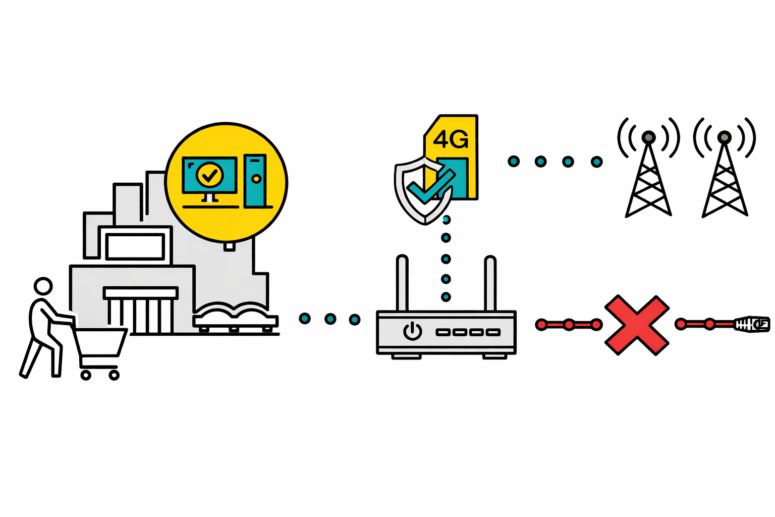 We set up a cellular or hybrid connection that activates instantly when your primary link fails. Multi-carrier support ensures reliability, and the switching happens automatically with no action needed from you.